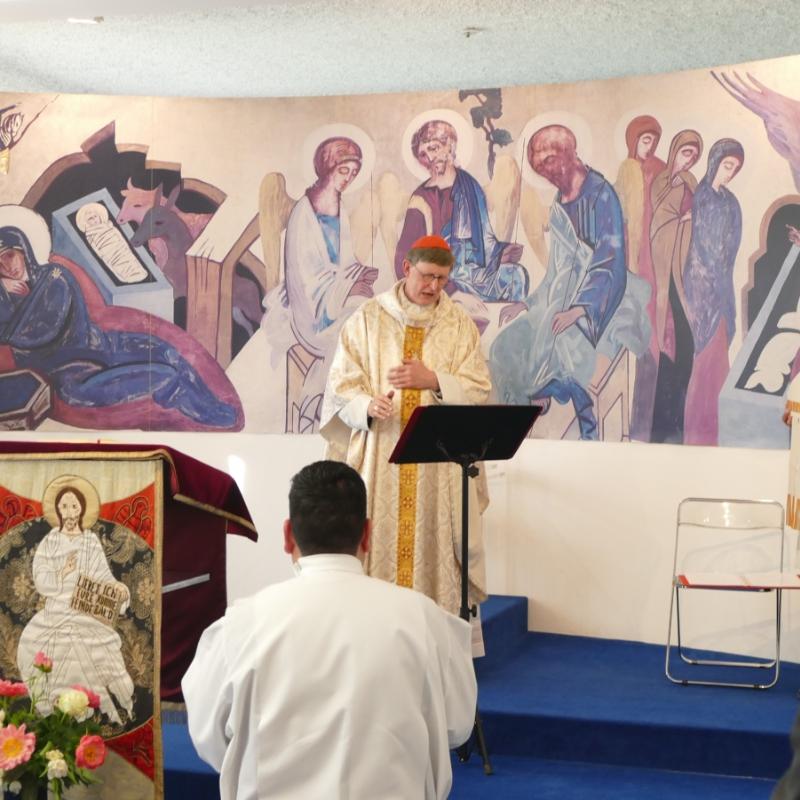 „Ich bin bereit!“ Mit diesem Ausspruch traten zwei Seminaristen aus unserem Seminar vor den Erzbischof von Köln: Einer, Samuel Jacobs (24, Düsseldorf) stellte sich zur Verfügung, damit die Kirche ihn unter die Gemeinschaft der Priesterkandidaten aufnimmt und legte daher die priesterliche Kleidung an, der andere, Pablo Guarachi (29, La Paz, Bolivien) erklärte seine Bereitschaft, als Lektor und Akolyth im Namen der Kirche das Wort zu verkündigen und am Altar zu dienen – dieses Jahr jedoch unter ganz anderen als den gewohnten Umständen. Denn die gegenwärtige Corona-Pandemie zwang auch das Redemptoris Mater Köln, umzudenken und die Feier anzupassen. So wurden im Vorfeld bereits Abstände ausgemessen und Abläufe geprobt, bis es am 08. Mai 2020 endlich soweit war: Mit Freude und Sicherheit erteilte Kardinal Woelki in kleinstem Kreis Admissio ad Ordines und die Beauftragung zum Lektorat und Akolythat.