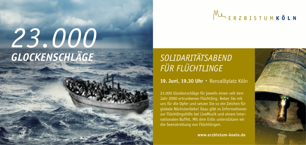 Erzbistum Köln 23.000 Glockenschläge werden am Freitag, 19. Juni um 20 Uhr, zu hören sein. Die Gedenk-Klänge werden in Köln vom „Dicken Pitter“ - der größten schwingenden Glocke der Welt - angestimmt und im Chor mit 230 weiteren Kirchen über das gesamte Erzbistum verteilt zu hören sein. Seit dem Jahr 2000 haben über 23.000 Flüchtlinge bei dem Versuch nach Europa zu gelangen ihr Leben verloren. Jedem einzelnen widmet das Erzbistum Köln nun einen Glockenschlag und fordert so eine "Globalisierung der Nächstenliebe". "Würde eine Glocke alle zwei Sekunden erklingen bräuchte sie für die 23.000 Schläge 12 Stunden- jeder Schlag in dieser Zeit steht für einen Toten: Kinder, Väter und Großmütter", erklärt Erzbischof Rainer Maria Kardinal Woelki. Der Erzbischof will mit dieser Aktion auch einen Weckruf an die Politik senden: "Die Totenglocken sollen eine europäische Flüchtlingspolitik einfordern, die einen legalen Weg für Flüchtlinge nach Europa schafft."
