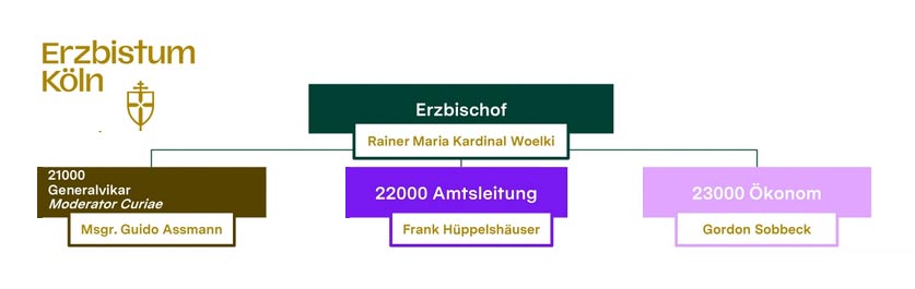 Mit einer geteilten Verantwortung in der Leitungsebene stellt sich das Erzbischöfliche Generalvikariat neu auf. Die Bistumsverwaltung setzt dabei auf drei klar profilierte Geschäftsbereiche: Verwaltung, Finanzen und pastorale Ausrichtung. Amtsleitung, Ökonom und Generalvikar tragen jeweils die Verantwortung. Damit wird die Ankündigung von Kardinal Woelki aus 2022 umgesetzt, ein zeitgemäßes Management an der Spitze zu entwickeln.