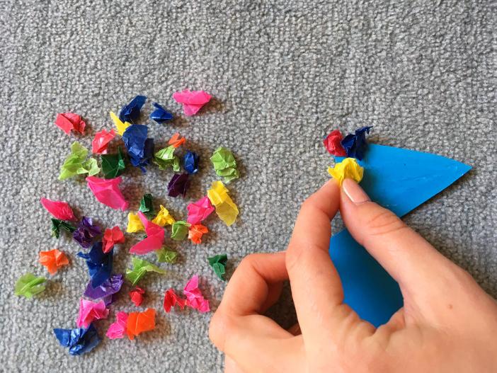 Reißt das Transparentpapier in kleine Stücke und knüllt sie zusammen.